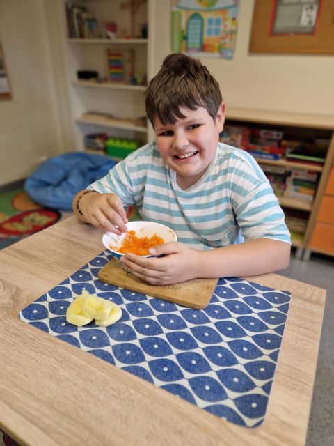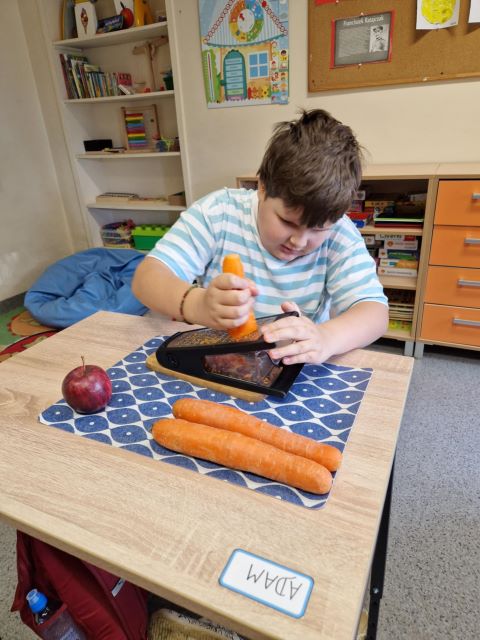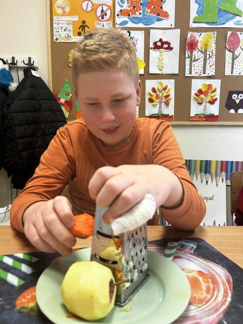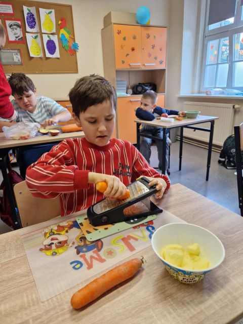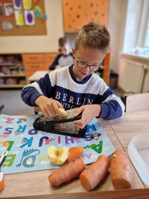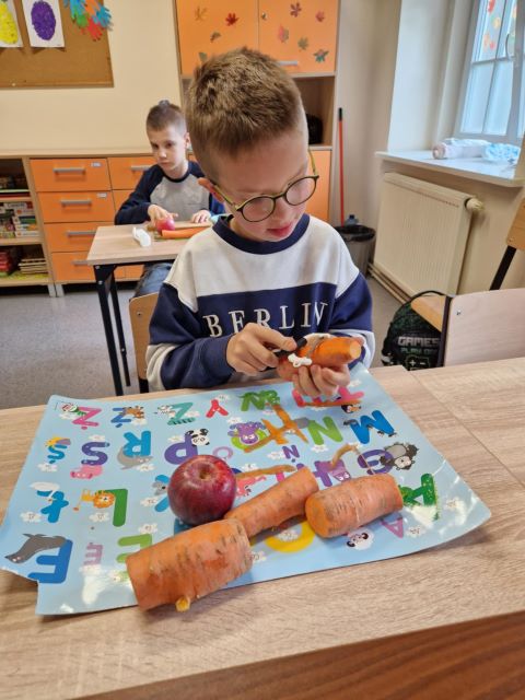 W czasie lekcji odbywały się zajęcia tematyczne związane z jabłkiem i marchewką – pełne kolorów, zabawy i zdrowych inspiracji.