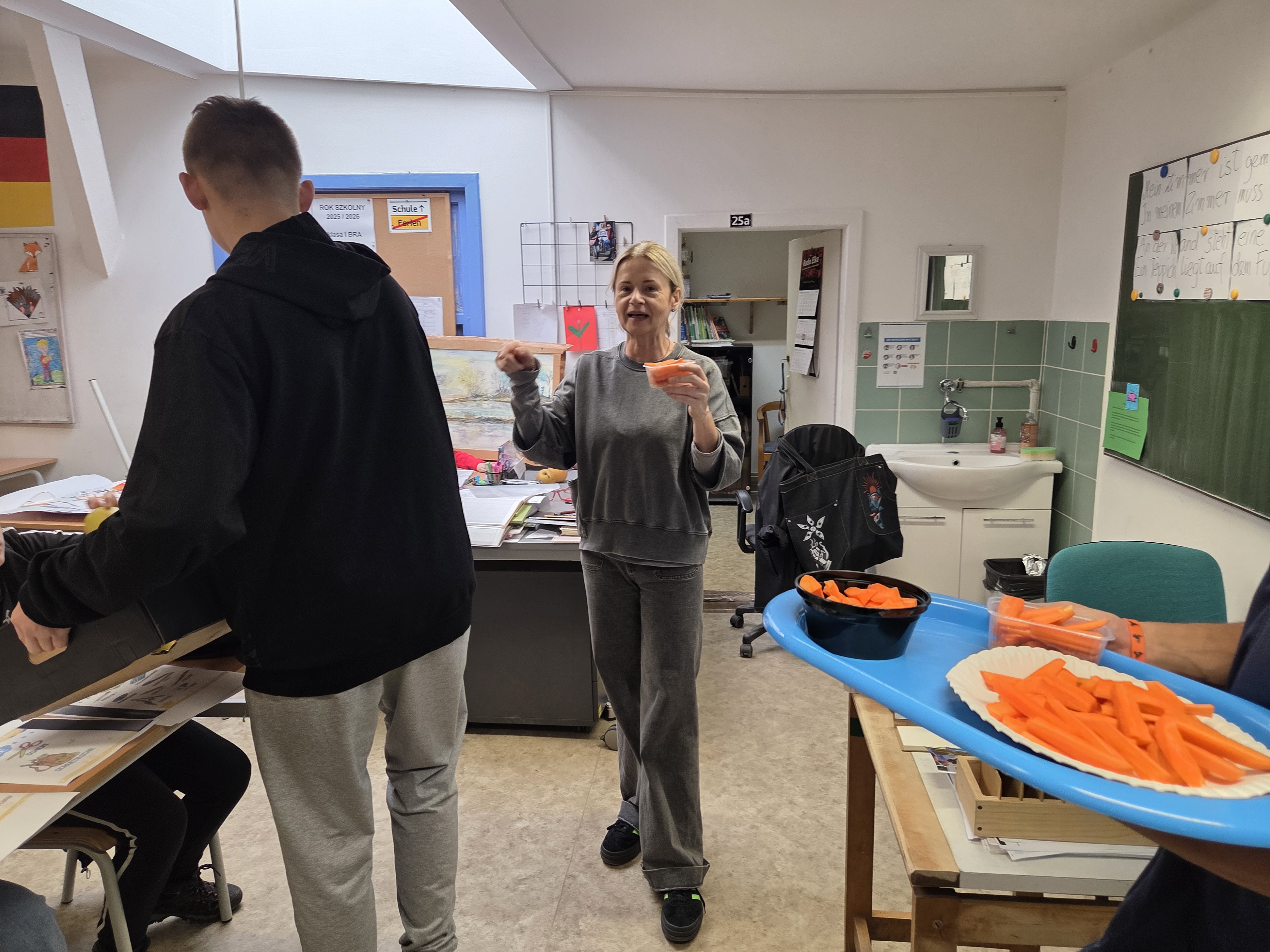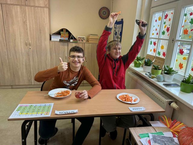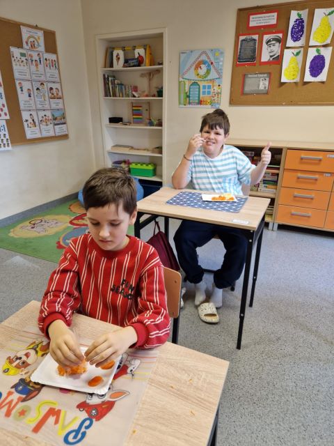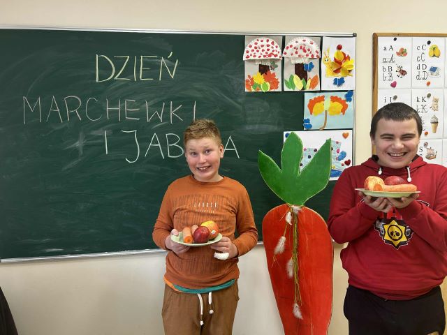 23 października 2025 roku w naszej szkole odbył się Dzień Jabłka i Marchewki. Uczniowie klas PDP przygotowali słodkie marchewki, którymi częstowali wszystkie klasy – jako pyszną i zdrową przekąskę.
