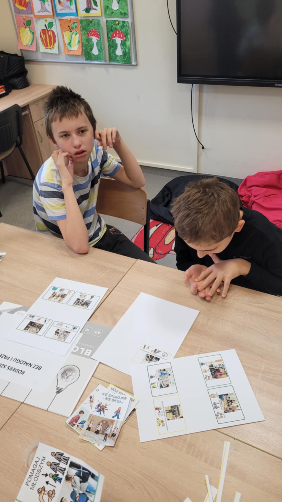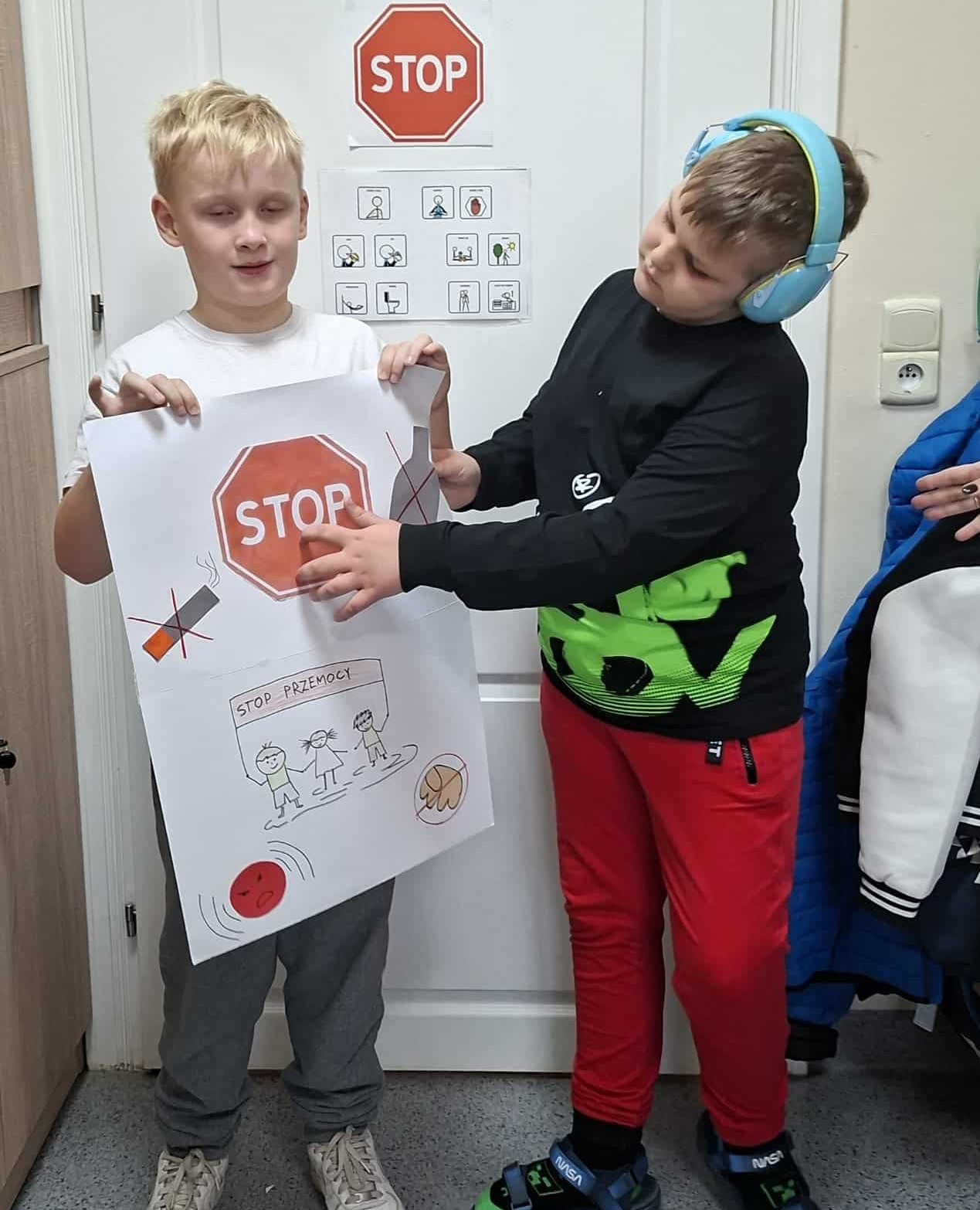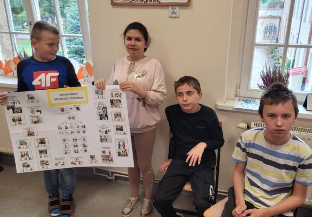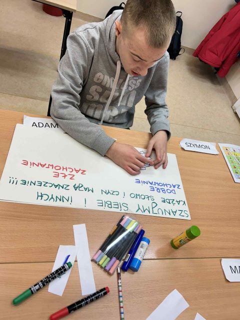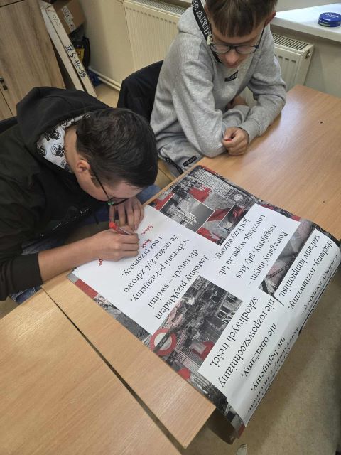 Podczas godzin wychowawczych każda klasa wspólnie omówiła zasady dotyczące bezpiecznego, zdrowego i życzliwego funkcjonowania w społeczności szkolnej. Następnie uczniowie przygotowali czytelne i zrozumiałe dla siebie plakaty – klasowe kodeksy, które odzwierciedlają ich sposób postrzegania wartości takich jak szacunek, bezpieczeństwo, przyjaźń, zdrowy styl życia i odpowiedzialność.
