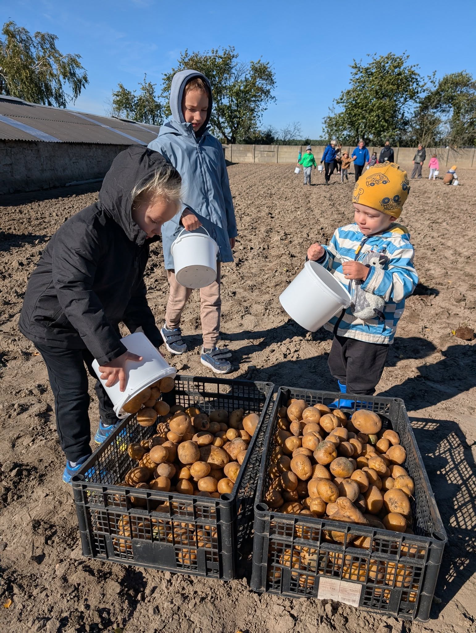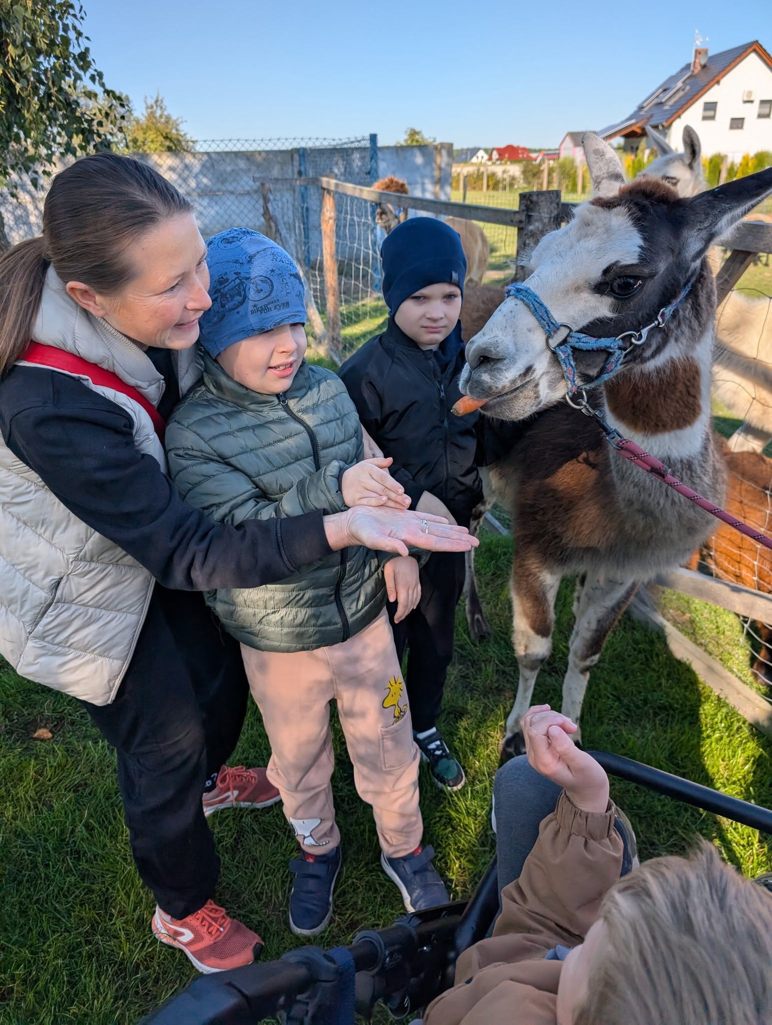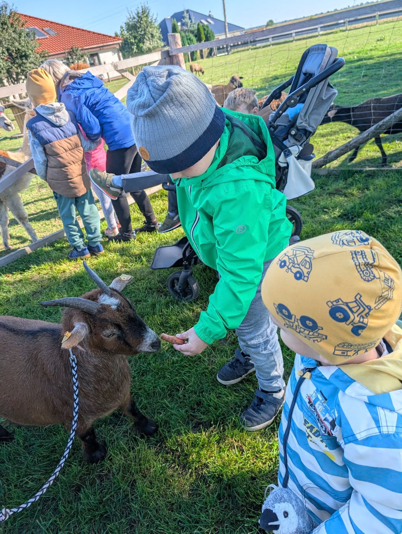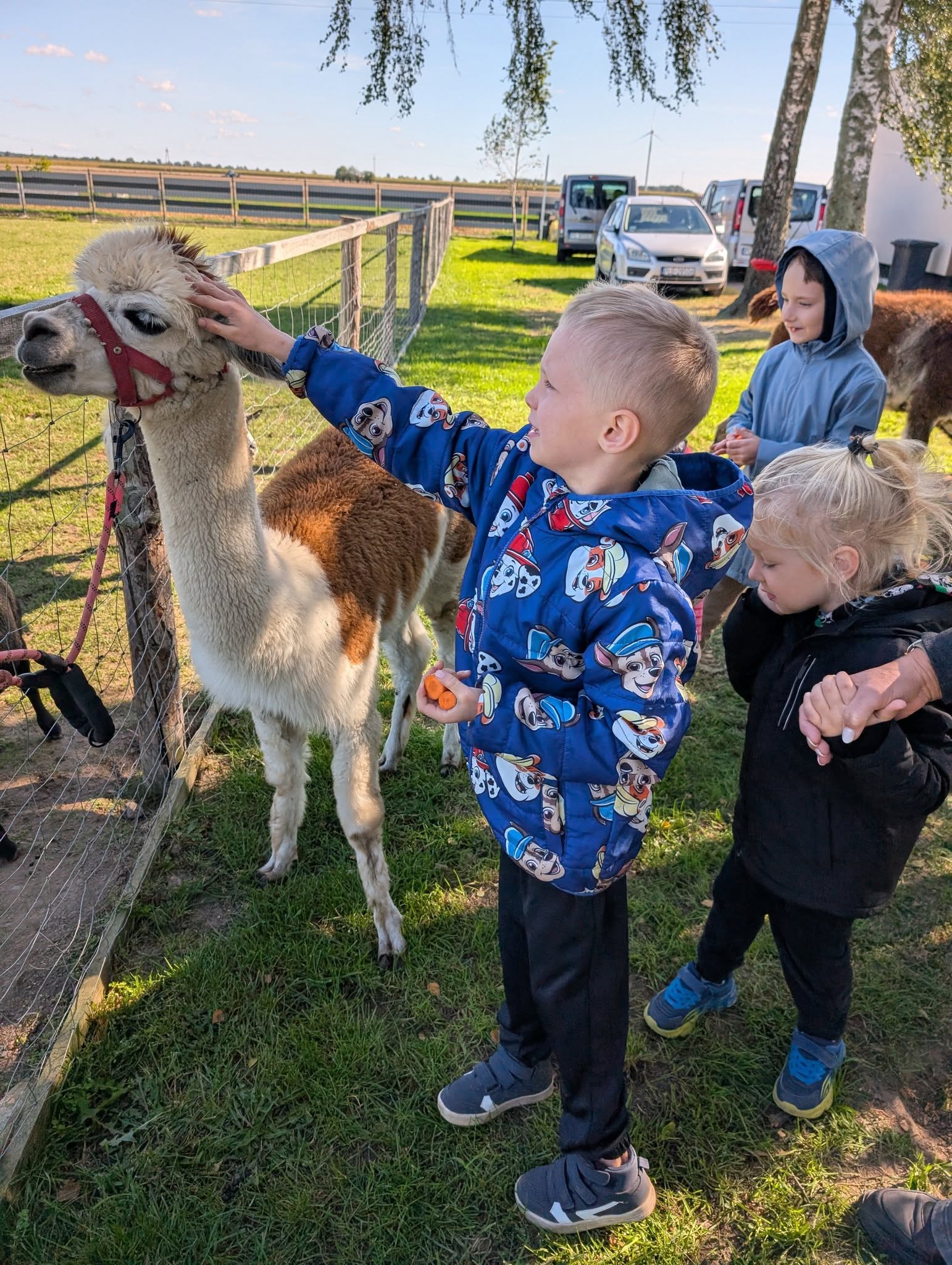 24 września 2025 r przedszkolaki gościły w Zaczarowanej Zagrodzie w Nowej Wsi świętując Dzień Ziemniaka i Dzień Przedszkolaka. Był to czas wypełniony po brzegi atrakcjami. Naszym zadaniem było pozbieranie ziemniaków i zrobienie ziemniaczanych jeżyków. Spacerowaliśmy z alpakami, karmiliśmy zwierzaki, smażyliśmy kiełbaski na ognisku. Przedszkolaki miały okazję pojeździć traktorami, skorzystały też z zabaw w piaskownicy i huśtawek. W tym wszystkim dopisała jesienna pogoda, bo mimo, że wietrzna to słoneczna