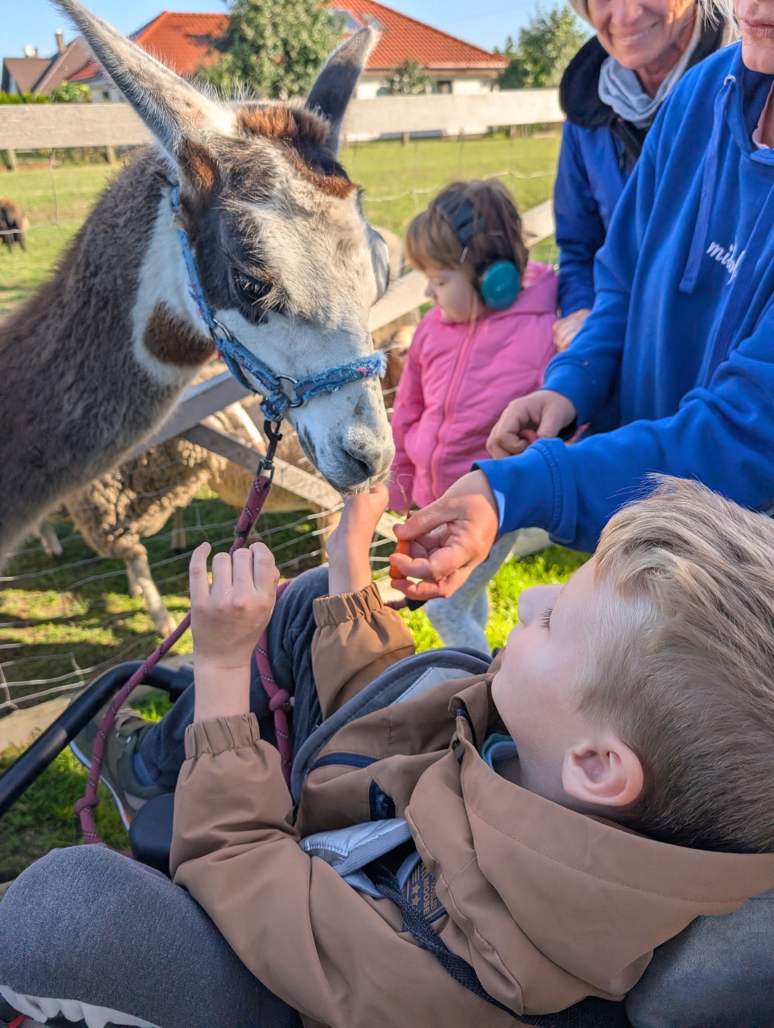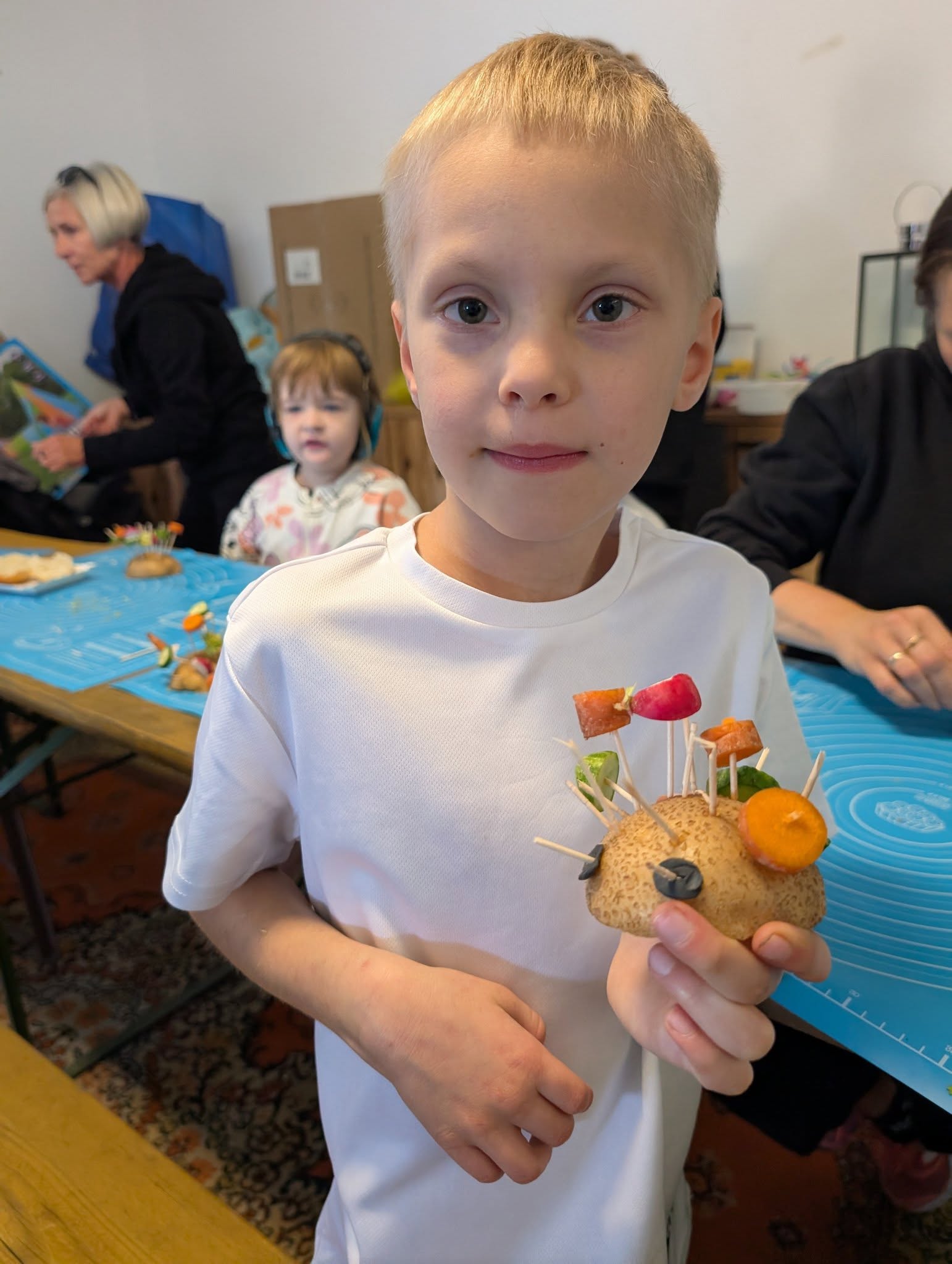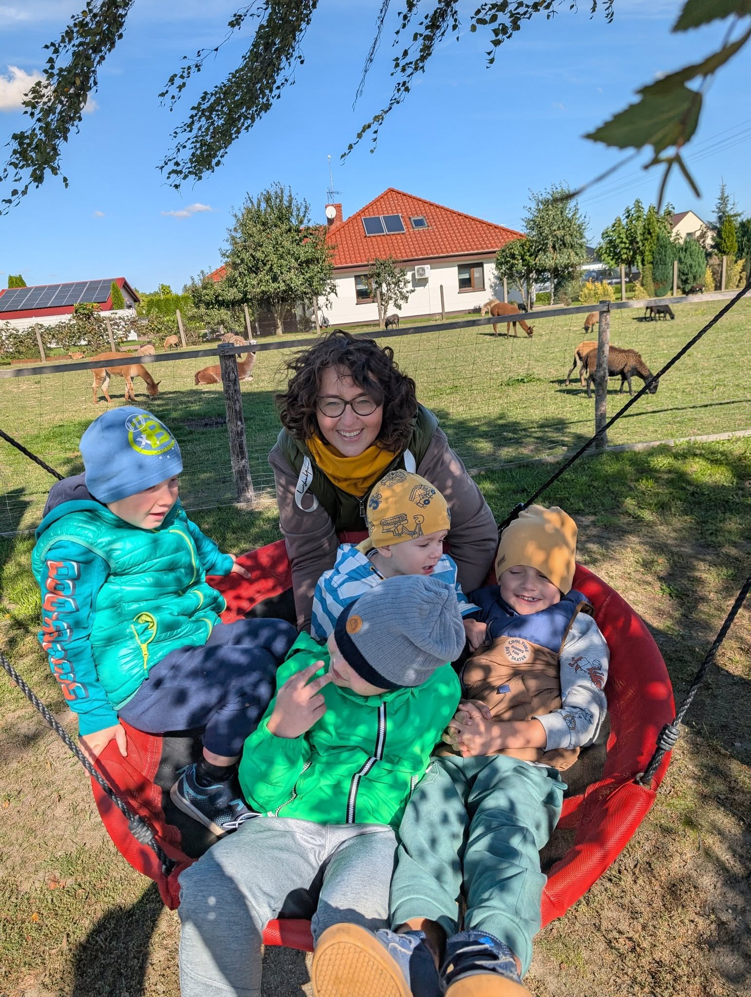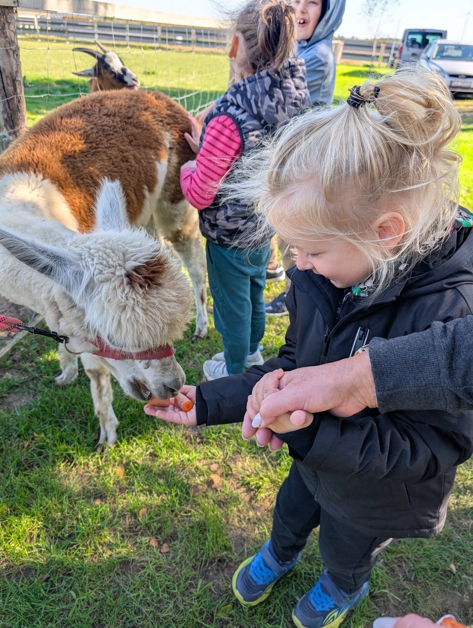 24 września 2025 r przedszkolaki gościły w Zaczarowanej Zagrodzie w Nowej Wsi świętując Dzień Ziemniaka i Dzień Przedszkolaka. Był to czas wypełniony po brzegi atrakcjami. Naszym zadaniem było pozbieranie ziemniaków i zrobienie ziemniaczanych jeżyków. Spacerowaliśmy z alpakami, karmiliśmy zwierzaki, smażyliśmy kiełbaski na ognisku. Przedszkolaki miały okazję pojeździć traktorami, skorzystały też z zabaw w piaskownicy i huśtawek. W tym wszystkim dopisała jesienna pogoda, bo mimo, że wietrzna to słoneczna