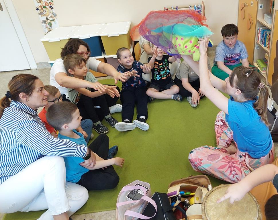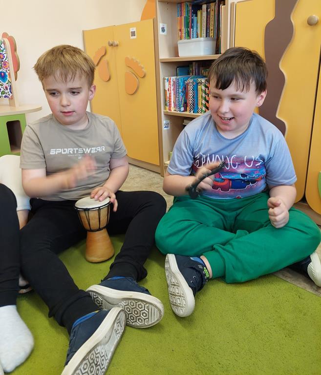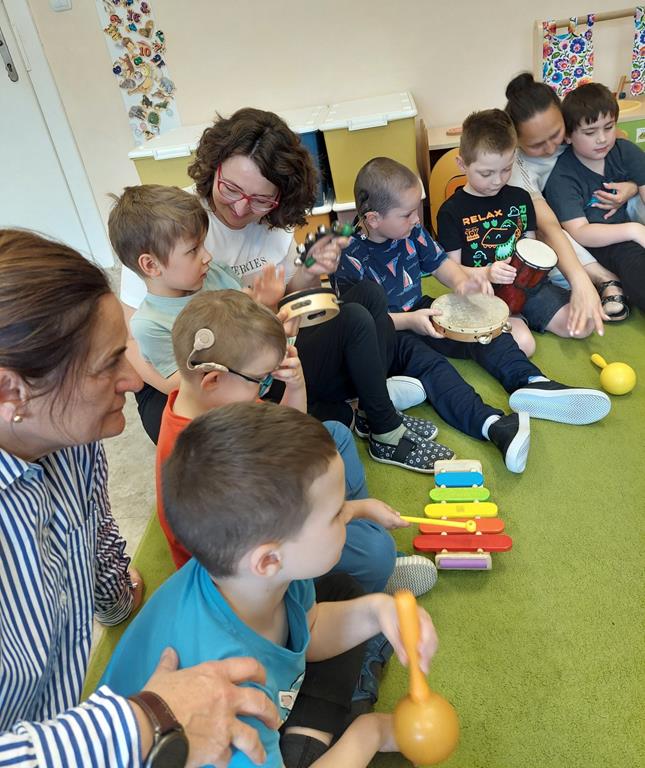 Wspólne muzykowanie w grupie Żabek i Sówek