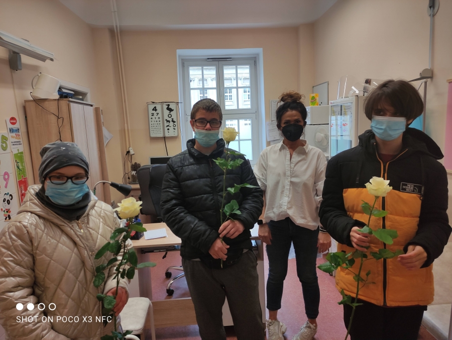 Pomimo że Dzień Pracownika Służby Zdrowia był 7 kwietnia, w naszej szkole, tuż po powrocie z przerwy świątecznej, delegacja uczniów - członków SK PCK i pracowników SOSW osobiście złożyła życzenia przedstawicielom służby zdrowia, którzy pracują w naszym Ośrodku. Jednocześnie pragniemy złożyć wyrazy uznania i wdzięczności za pełną poświęcenia służbę na rzecz drugiego człowieka wszystkim pielęgniarkom, ratownikom medycznym, lekarzom i pozostałym pracownikom służby zdrowia.